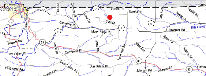 -Go West on State Hwy. 33 for approximately 6 miles. Turn right onto Cty. Highway V. Go 2.3 miles and turn left onto County Hwy. F. Go 0.3 miles and turn left onto Cty. Hwy F. Go 1.9 miles and turn right onto 24th Ct. (also labeled Oregano Road on other end). Go 0.8 miles and your destination is on your left. The address of the cabin entrance is S453 24th Ct.